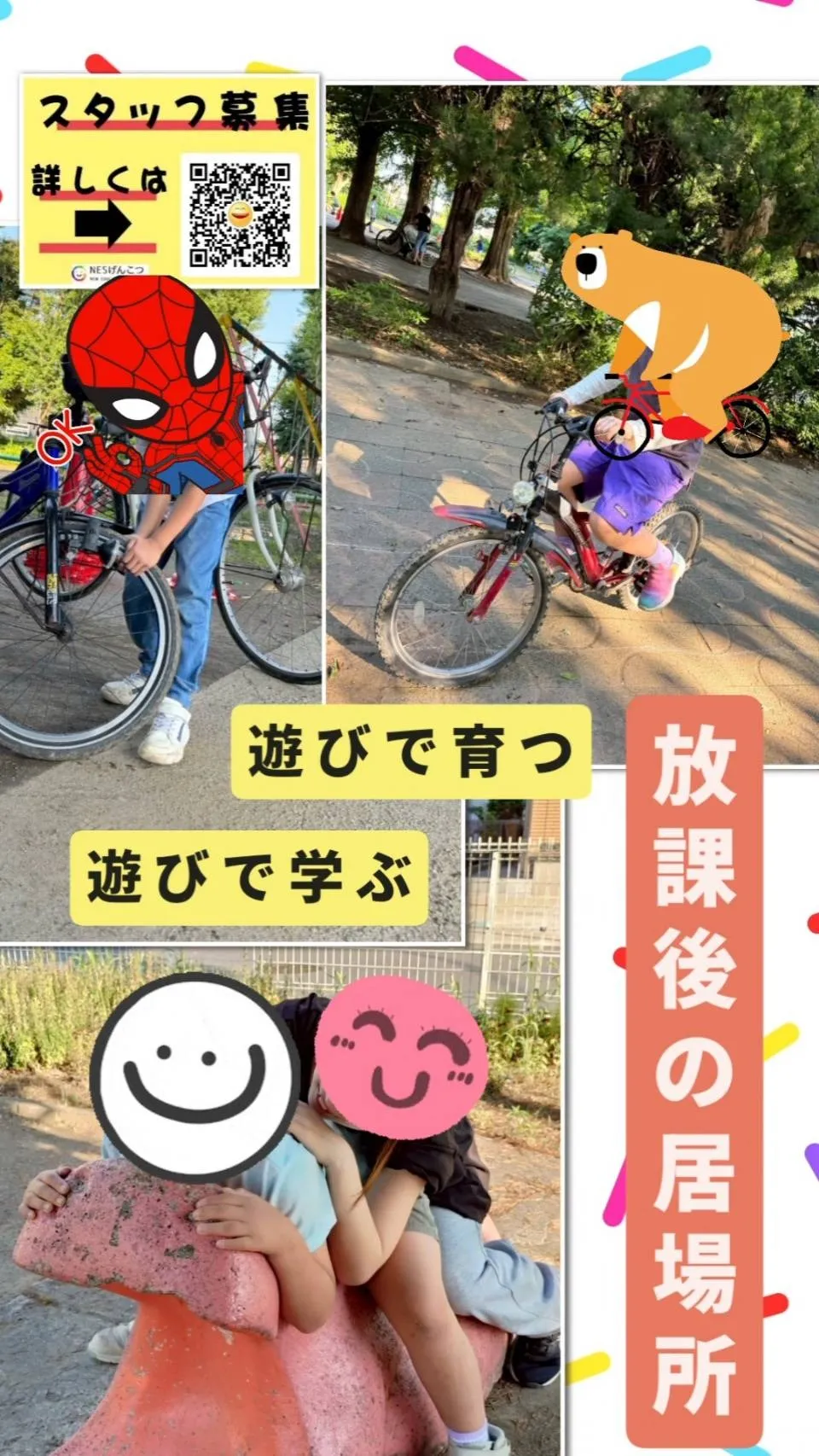 この日も子供達は元気に帰ってきています 学校から帰って来た子供達は、おやつを食べたり 宿題をしていました 室内ではトミカやプラレールで遊んだり、 友達とカードゲームをして過ごしていました 自転車…