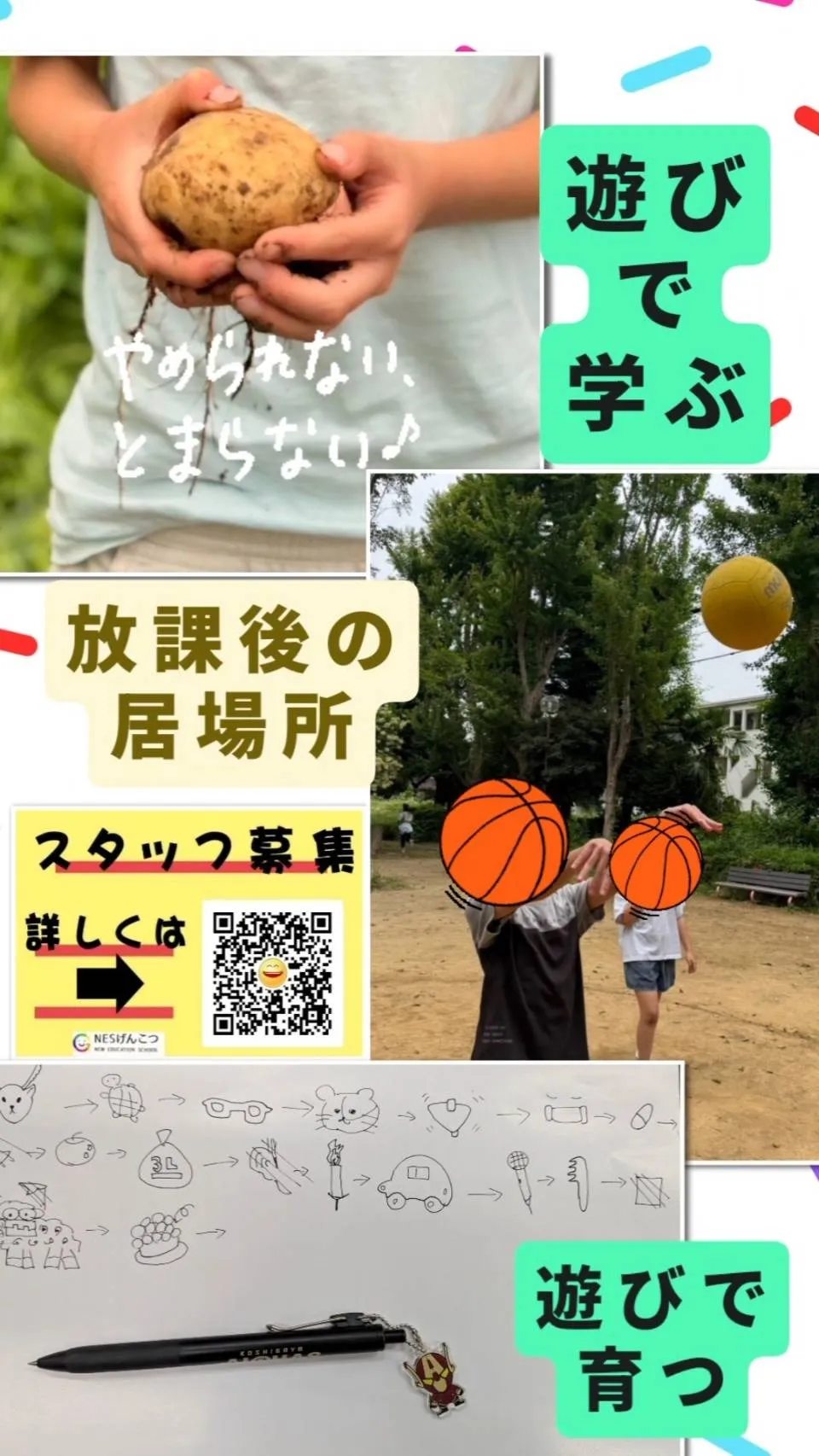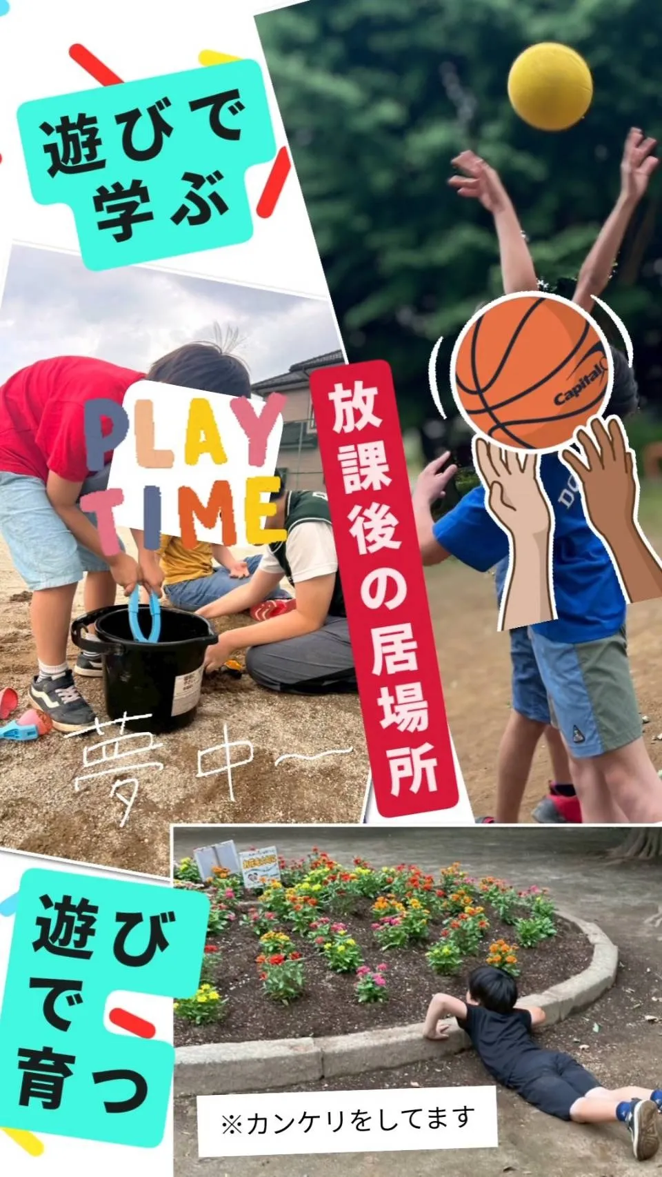 風が気持ち良く日差しもあって外遊びには最高の1日でした学校から帰って来た子供達は宿題をしたり、おやつを食べて過ごしていました 公園では、集団遊びやボール遊びに生き物探しや追いかけっこに泥団子…